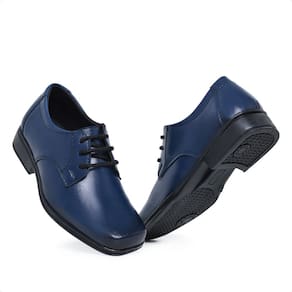 Sapato Social Infantil Menino Bico Quadrado Cadarço Solado Borracha Palmilha EVA Interno Forrado - 24 - Azul Marinho