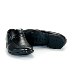O Sapato Jota Pe 45002 tem o cabedal em couro com detalhe em pesponto e fivela.