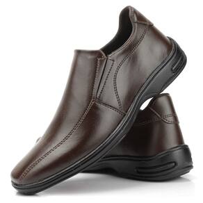 Sapato Social Masculino Confortável com Fechamento Ajustável e Elásticos Laterais - 42 - Marrom