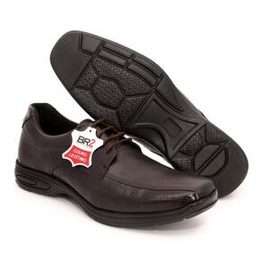 Sapato Social Masculino Couro Cadarço Bico Quadrado Casual - 41 - Marrom