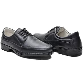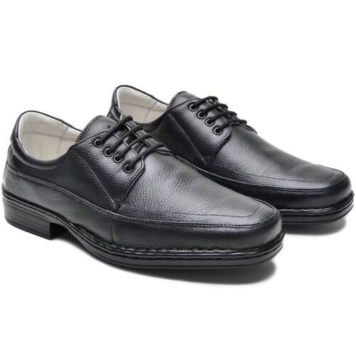 Sapato Social Masculino Couro Confortável Cadarço Costurado - 43 - Preto