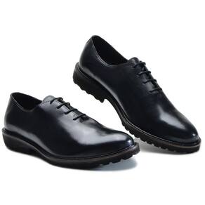 Sapato Social Masculino Couro Oxford Cadarço Confortável - 43 - Preto