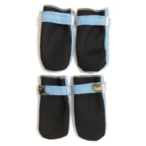 Principais Características: - Sapato confeccionado em tecido soft azul claro - Revestido de solado emborrachado antiderrapante - Tiras aderentes para fechar com regulagem - Conjunto com 4 sapatinhos - Cor: azul claro - Tamanho: G - Medidas aproximadas: Largura: 7 cm, Altura: 12 cm - Ideal para cães e gatos