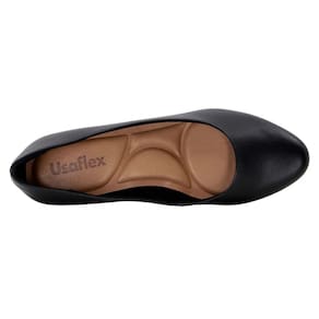 Sapato Usaflex Q6692 Feminino Preto em couro bico redondo casual 36 -