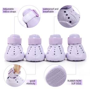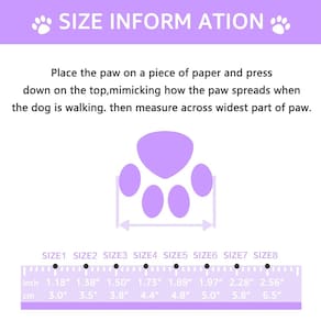 As sandálias para cães para pavimento quente podem ser colocadas e removidas com muita facilidade. Tecido macio e solas resistentes protegerão seu cão de lesões. O peso mais leve do que os sapatos normais para cães fazem com que seu cão sinta que seus pés estão gentilmente abraçados por esses sapatos. O design exclusivo torna este sapato para cães de estimação mais respirável e fácil de limpar. - Tamanho 4: (5 x 4 cm) (C x L). Escolha o tamanho certo para o seu cão de acordo com as medidas. O tamanho que fornecemos é da palmilha interna. - Qualidade: as botas para cães têm uma sola robusta e materiais de borracha de alta qualidade para garantir que estejam prontas para sua aventura. - Robusto: a sola antiderrapante resistente das botas para cães oferece estabilidade e tração, proteção contra espinhos afiados e pavimento quente. - Seguro e ajustável: fácil de colocar/tirar. Estes sapatos para cães se expandem com uma ampla abertura de costura dividida e duas tiras ajustáveis e refletivas para garantir um ajuste firme e também deixam seu cão seguro à noite. - Atendimento ao cliente amigável: nosso tamanho é baseado no diâmetro interno do sapato e é medido à mão. Considere um pequeno erro de tamanho. Você pode entrar em contato conosco com qualquer dúvida sobre os produtos e serviços a qualquer momento.