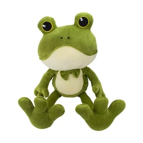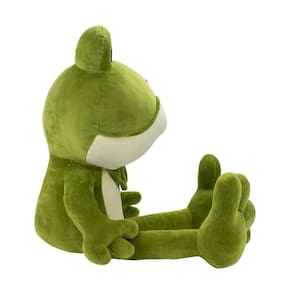 Bichinho de pelúcia no formato de um sapo usando gravata de 61 cm de tamanho (cabeça até ponta da pata estendida). As patas são longas, ideais para colocar o sapo sentado na borda da mesa/estande. Presenteie quem você ama