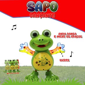 O Sapo Dançante é o entretenimento perfeito para o seu filho! ele conta com luzes coloridas e sons musicais que vão prender a atenção do seu filho garantindo sua diversão e desenvolvimento psicomotor, já que ele dança mexe os braços e olhinhos interagindo com seus pequenos. Selo do Inmetro garantindo maior segurança
