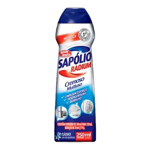 Compre agora o Sapólio Radium Cremoso Multiuso 250ml Clássico Bombril e tenha um produto de qualidade para limpar e renovar o brilho de suas superfícies! Marca: Sapolio Bom Bril Ean: 7891022861044