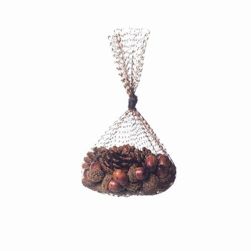 Pinhas e Avelãs Decorativas - Saquinho: 10cm x 15cm x 15cm/ Avelãs: 3cm x 2cm x 2cm / Pinhas: 5cm x 5cm x 5cm - Composição/Matéria Prima - 100% Plástico - Cor Predominante - Marrom - Cod. Cromus - 1640100 - Instruções Adicionais e Limpeza - Limpar com pano macio e seco ou espanador