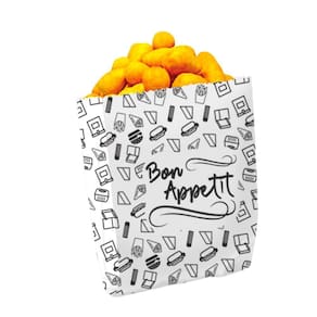 Saquinho de Papel Batata frita, Salgados ou Hamburger 1.000un DESCRIÇÃO Modelo disponível: impresso Dimensão: 13x13x5,5 cm C/L/A Material: papel kraft branco barreira gordura Itens inclusos: 1.000 unidades Compre agora nossa saquinho de papel para fritas, salgadinhos ou burger Agregue valor ao seu produto Se diferencie no mercado de hamburguerias, lanches, fast-food, food-truck e não deixe seu negócio fora dos aplicativos delivery Ifood, UberEats, Rappy, etc... Utilize saquinho de papel para batata-frita, salgados ou hamburger na rua, na lanchonete, para viagem, no delivery ou food truck e ofereça seu produto da maneira adequada, que garante a higiene e praticidade de seu cliente, agregando valor ao seu negócio ao mesmo tempo que fideliza sua clientela. Marca: Pdv Print
