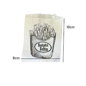 Saquinho Papel Branco Para Batata Frita Pequeno 8X10Cm- 500Un Saco pequeno Impresso para batata frita Kit com 500 unidades Material: Papel Tamanho: 8cm x 10cm Saquinho Papel para Batata Frita Perfeito para acondicionar porções de alimentos como batata frita.