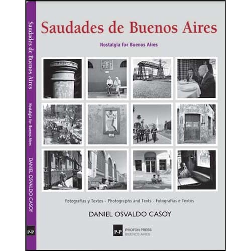 Estas fotografías forman parte de la colección que organizó Daniel Osvaldo Casoy para despedirse de Buenos Aires. Su futura partida hacia Rio de Janeiro en 1985, por una propuesta de trabajo como arquitecto y fotógrafo, despertó en él nostalgias prematuras. Ese sentimiento lo impulsó a ejecutar esta secuencia fotográfica, que luego en Brasil denominó Saudades de Buenos Aires . Las tomas se insertan en un itinerario de barrios, avenidas y plazas porte as, para terminar en Palermo, territorio, según Jorge Luis Borges, de la Fundación Mítica de Buenos Aires. Y desde allí, sonar circularmente el Sur, la metáfora cardinal. Redactó para cada imagen una crónica con el fin de que el lector pueda compartir sus claves arquitectónicas, históricas y autobiográficas.