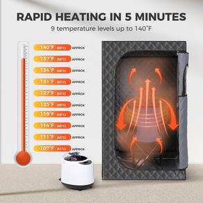 - Aquecimento rápido em 5 minutos: o sistema de vaporização portátil para sauna tem uma potência de 1000 W, uma capacidade de água de 2,6 L, um tempo de uso de 1 a 99 minutos, 9 configurações e uma temperatura máxima de 60 °C/60 graus Celsius. O vapor enche toda a barraca da sauna em apenas 5 minutos. E esta caixa de vapor pode ser operada remotamente através do controle remoto, e o tempo de aquecimento e a temperatura podem ser ajustados conforme necessário