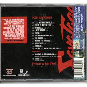 Savatage – Poets And Madmen Selo: Shinigami Records – 3E390, Sound City Records (4) – 3E390, Ear Music – 3E390Formato: CD, Album, Reissue, DigipakPaís: BrazilLançado: 2021Genre: RockEstilo: Heavy Metal, Prog RockLista de faixas 1 Stay With Me Awhile2 There In The Silence3 Commisar4 I Seek Power5 Drive6 The Morphine Child7 The Rumor8 Man In The Mirror9 Surrender10 Awaken11 Got To Get Back To A ReasonBonus Tracks 12 Tonight He Grins Again (Acoustic Version Recorded By Jon Oliva In 2011)13 Sleep (Acoustic Version)