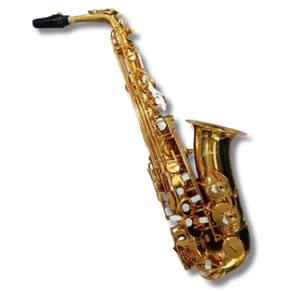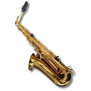 Saxofone Alto Afinação Eb Mi bemol Apoio de polegar regulável em ABS Acabamento laqueado Campana ornamentada Parafusos de micro regulagem nas chaves B Si / A Lá / F Fá / E Mi / D Ré