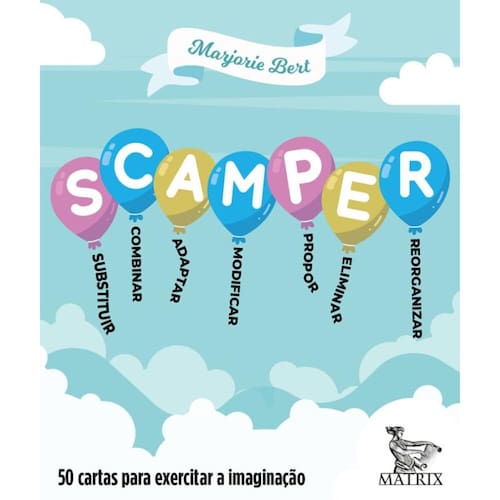SCAMPER é um acrônimo de Substituir, Combinar, Adaptar, Modificar, Propor, Eliminar e Reorganizar. Uma ferramenta para desenvolver novos olhares e alternativas que impulsionam novas ideias ou melhoram as já existentes. Com as perguntas e práticas pro postas neste livro-caixinha®, você vai favorecer a criatividade, engajar a memória de trabalho, melhorar o controle executivo e despertar emoções positivas, como curiosidade e satisfação, liberando o potencial das crianças em diferentes contextos. O SCAMPER oferece uma abordagem flexível no ambiente educacional, que pode ser adaptada a diferentes disciplinas, níveis de ensino e estilos de aprendizado. Ele pode ser aplicado em diversas áreas, como ciências, artes, matemática, leitura e escrita, p roporcionando uma aprendizagem inovadora.