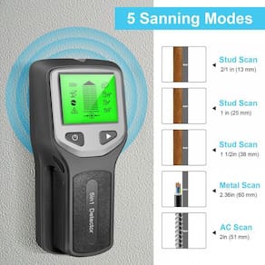 Scanner display lcd detector metal cobre madeira fio 5 em 1 Características Detector de metais, madeira e elétrica não detecta pvc Detecta madeira até 3,8cm Detecta metal até 7,6 cm Detecta fios elétricos vivos até 7,6 cm Detecta pregos e ferragem em colunas e vigas até 7,6cm Detecta tensão de até 7,6 cm de profundidade Detecta madeira e cravo de metal até 3,8cm Encontra tubos de cobre, vergalhões, cabos elétricos e vigas de madeira/pregos em chapeador paredes Fácil de usar com botões grandes para quando se usa luvas Especificações Material: plástico + borracha Podem ocorrer diferenças de 0.5-2 cm devido à medida manual Bateria 9v não inclusa Marca: Sg Utilidades