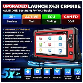 Descubra por que o CRP919E se destaca! Com todas as funções atualizadas do XOOL D7Atel M808S, ele opera como CRP919EBT a um custo mais baixo. Este scanner automotivo oferece codificação online de ECU, 35 serviços, 34000 testes ativos, diagnóstico de todos os sistemas, novos protocolos CAN FD DoIP, FCA AutoAuth.Além disso, conta com hardware avançado, tela sensível ao toque, 332 GB de memória, bateria de 6100mAh, Wi-Fi de 2.45GHz e câmera de 8MP.