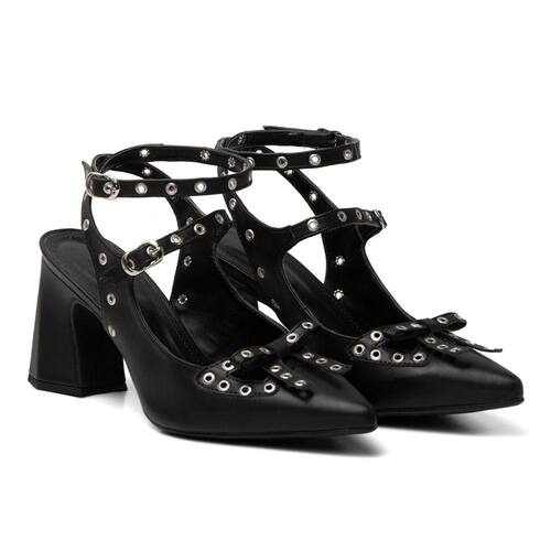 Scarpin Casual Feminino com Salto Grosso Laço e Fivelas - 38 - Preto