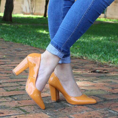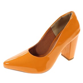 Scarpin Dravanna Salto Alto Bloco Verniz Laranja - 39 - Vermelho