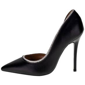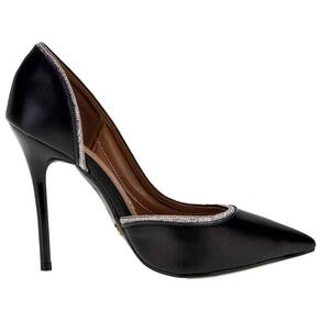 O Scarpin Feminino Salto Fino Vizzano é confeccionado em Pelica de alta qualidade com acabamento em costura e detalhes em strass. Esse modelo possui palmilha em PU com solado em borracha antiderrapante e salto alto de onze centímetros e meio.
