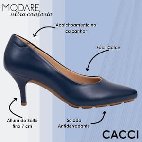 Pensado para o dia a dia, conta com palmilha ultraconforto exclusiva da Modare e solado em borracha antiderrapante com salto de 7cm que não só traz um visual elegante como também proporciona segurança durante o uso.