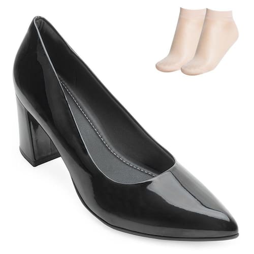 Nome: Scarpin Salto Piccadilly e Meia PD24-74513 VZ. Gênero: Feminino. Indicado Para: Moda-Dia a dia-Casual. Estilo da Peça: Social. Ocasião: Dia a dia. Material Externo: Verniz. Material Interno: Têxtil macio. Palmilha: Anatômica e macia. Solado: Borracha antiderrapante. Tipo de Salto: Vírgula. Altura do Salto: Médio, 7 cm. Peso do Produto: 715 g (o peso varia de acordo com a numeração). Garantia do Fabricante: Contra defeito de fabricação. Origem: Nacional. Código Produto: 02012569. Marca: Piccadilly. Acompanha um par de meias fina tamanho único. Composição: 85 % Poliamida. 15 % Elastano.