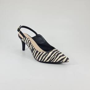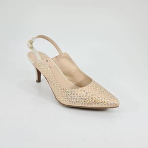 Lindo modelo de scarpin no estilo slingback, possui salto médio 7cm, bico fino, calcanhar aberta e tira que prende no calcanhar por fivela. Modelo de sapato feminino confortável, combina fácil com varios estilos, desde looks festa até looks casuais.