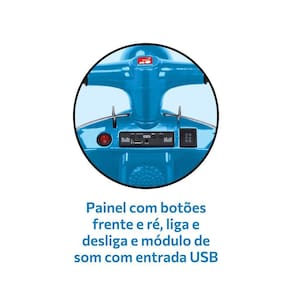 Controle Intuitivo: Apresenta botões de liga e desliga, e de frente, ré e neutro, facilitando a operação e a diversão.