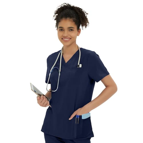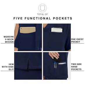Prepare-se para suas exigentes mudanças de estilo com esta blusa esportiva e profissional. Projetado para ser resistente, o tecido é resistente a rugas, não transparente e projetado para suportar várias lavagens. Feito de uma mistura de 94% poliéster 6% elastano, este conjunto garante durabilidade com costuras e costuras reforçadas, ao mesmo tempo em que oferece conforto durante todo o dia com seu material elástico em quatro direções. O decote em V possui um bolso no peito, dois bolsos frontais, uma bolsa para caneta e um bolso utilitário. Eleve seu jogo profissional e alcance o sucesso com roupas que funcionam tão duro quanto você. - O MÁXIMO DE CONFORTO — Experimente um conforto incomparável com nossos esfoliantes, nossos esfoliantes apresentam materiais ultramacios, elásticos, resistentes a rugas, antiabsorventes, amigáveis à pele, de secagem rápida e respiráveis que mantêm você confortável durante seus turnos de trabalho. - Ajuste clássico — nossa elegante blusa esfoliante com decote em V é feita de tecido elástico durável e projetada para ser confortável e profissional. As bainhas com fenda lateral realçam e embelezam a silhueta do usuário. Costuras reforçadas garantem durabilidade sem comprometer o estilo. - CINCO BOLSOS — Nossas blusas femininas possuem um bolso esquerdo no peito para itens leves sem sacrificar o conforto. Além disso, dois bolsos, uma bolsa para canetas e um bolso utilitário na parte inferior frontal oferecem amplo armazenamento para itens essenciais, como cotonetes, cadernos, canetas e smartphones. É prático se você está trabalhando ou apenas relaxando. - ESPECIALIZAÇÃO — Os esfoliantes são projetados com bolsos amplos para atender às necessidades práticas do seu ambiente de trabalho. Perfeito para enfermeiras, estudantes de medicina e enfermagem, médicos, salões de beleza, casas de repouso, consultórios odontológicos e centros de cuidados. - Fácil de cuidar — Nossas blusas esfoliantes são laváveis à máquina e resistentes ao encolhimento, feitas de um tecido durável que pode suportar várias lavagens e nosso material resistente a rugas manterá você com uma aparência elegante e profissional. Simplifique sua rotina de cuidados e tenha sempre a melhor aparência possível.