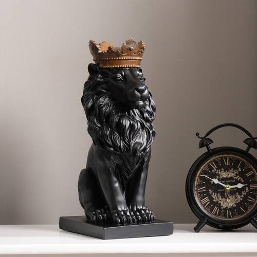 - Cor preta ousada: o elegante acabamento preto da estátua do leão aprimora seu apelo moderno, proporcionando um contraste impressionante com a coroa dourada para um efeito visualmente impressionante.