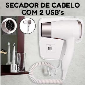 Secador branco fixo para hotéis e banheiros 110v Descrição do anúncio: Adicione sofisticação ao seu banheiro com o secador de cabelo de parede, perfeito para uso em casa ou em ambientes como hotéis, pousadas e spas. Compacto, leve e poderoso, este secador iônico cuida da saúde do seu cabelo, proporcionando um brilho e suavidade excepcionais. Com seu design resistente e funcionalidade avançada, ele é ideal para qualquer tipo de cabelo, seja liso, encaracolado ou ondulado. Conteúdo da embalagem: 1 secador de cabelo de parede 1 cabo espiral de poliuretano extensível até 1,6 metros Manual de instruções Características: Design compacto: fácil de armazenar e ideal para viagens. Funcionalidade iônica: reduz o tempo de secagem e elimina o frizz, proporcionando brilho e suavidade ao cabelo. Resistência: feito para suportar quedas, compressão e altas temperaturas. Ventilação poderosa: baixo nível de ruído e excelente dissipação de calor. Especificações: Potência: 1300w Frequência: 50hz Comprimento do cabo de energia: 70cm Comprimento do cabo do secador: até 1,20m cabo espiral Configurações: 2 ajustes ar frio e quente Material: plástico resistente Cor: branco Dimensões: 24 x 17,5 x 17cm 2x entradas usb Principais perguntas sobre o produto e respostas: 1 este secador é adequado para uso doméstico Sim, ele é ideal tanto para uso doméstico quanto para ambientes comerciais como hotéis e spas. 2 o cabo do secador é resistente Sim, o cabo espiral de poliuretano é altamente resistente, com boa extensibilidade e rápida retração. 3 posso usar este secador em uma tomada comum Sim, ele é compatível com tomadas de 10a. 4 o secador é barulhento Não, ele possui uma ventilação poderosa com baixo nível de ruído. 5 este secador pode ser em cabelos molhados Sim, ele é projetado para secar rapidamente cabelos molhados, mantendo a umidade natural e evitando danos. Marca: Não Informado