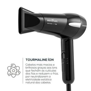 Características Adicionais: 2 Temperaturas 2 Velocidades Cabo com 1,70m de comprimento Cabo dobrável Pintura de íons tourmaline Acessório concentrador de ar Secador com cordão elétrico com 1,70M Motor DC Consumo: 1,2kW/h Modelo: BSC1200 Libera Íons