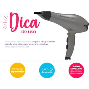 - O secador está disponível nas voltagens de | 127V (1900W) | e | 220V (2000W) |. É importante escolher a voltagem correta para o uso em sua casa.