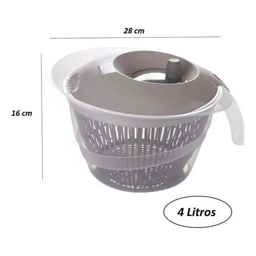 Centrífuga manual para saladas e verduras com capacidade de 4 litros. Ideal para remover o excesso de água de folhas e vegetais, deixando-os prontos para o consumo ou preparo de receitas.Nº de velocidades