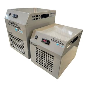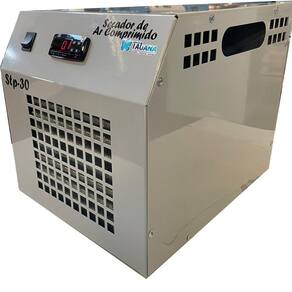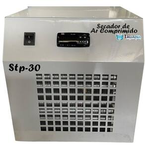 Secador de ar comprimido mod. STP-30, capacidade Scfm / Nm 30/51 com purificador de ar embutido, descarga de impurezas automáticas, placa eletrônica com sistema inteligente para controle de temperatura de ponto de orvalho entre -35ºC. A +10ºC, com indicador de temperatura, gás de refrigeração R-134, conexão 1/2 BSP, pintura epóxi, estrutura em aço.