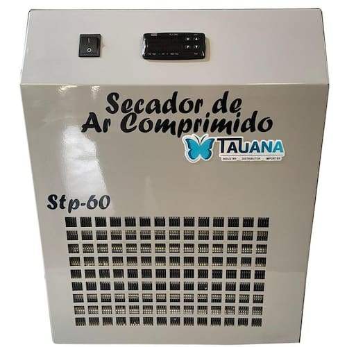 Secador de ar comprimido mod. Stp-60, capacidade scfm / nm 60/102 com purificador de ar embutido, descarga de impurezas automáticas, placa eletrônica com sistema inteligente para controle de temperatura de ponto de orvalho entre -35ºc. A +10ºc, com indicador de temperatura, gás de refrigeração r-134, conexão 1/2 bsp, pintura epóxi, estrutura em aço.