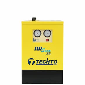 Secador Techto Ar Seco 35 Aplicação:Compressor de Ar 15 à 40 pcm Secador de ar por refrigeração projetado com tecnologia de ponta para assegurar ótimo desempenho com alta eficiência, retirando até 99% da água liquefeita e não permite a formação de gelo e nem bloqueia o fluxo de ar!Com sistema de controle analógico, o secador possui painel de simples e fácil operação. - Temperatura de entrada do ar até 40ºC- Temperatura máxima do meio ambiente até 40ºC (padrão)- Ótimo desempenho- Alta eficiência Especificações TécnicasVazão (l/min) - 991Vazão (pcm) - 35Pressão de Trabalho (bar(g)) - 6 à 12Pressão de Trabalho (psig) - 87 à 174Temperatura de Entrada ºC (min.) - 05Temperatura de Entrada ºC (max.) - 40Ponto de Orvalho ºC - 3 à 10Tipo de Gás Refrigerante - R134APotência (W) - 250Alimentação (V/Fase/HZ) - 220/1/60Conexões (Entrada / Saída) - 1" BSPPeso (kg) - 36Dimensões (mm) - 650 x 420 x 640 Referência de Fábrica3073