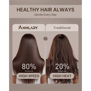 Ultra-Fast Drying with 110,000 RPM Motor - Equipped with a high-speed 110,000 RPM motor and 1500W of power, ANNLARY delivers strong 25?m/s airflow to dry hair up to 3× faster than traditional dryers—saving time while protecting shine.