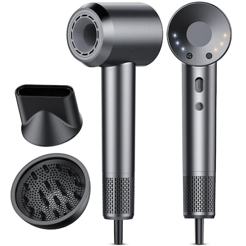 - ?Motor de hipervelocidade, secagem relâmpago?O secador de cabelo de alta velocidade está equipado com um motor avançado sem escovas, proporcionando um fluxo de ar potente a 160.000 rpm para secar rapidamente as superfícies do cabelo, evitando danos causados pelo calor devido a temperaturas excessivas. Garante uma secagem suave, sendo 6 vezes mais rápido do que os secadores de cabelo tradicionais! Se você está com pressa ou apenas precisa de um retoque rápido, ele proporciona resultados de qualidade de salão instantaneamente.