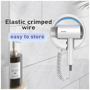 A carcaça em plástico ABS é leve e resistente ao uso diário, adequada para uso em áreas internas de banheiro fora da área de contato direto com água. O aparelho utiliza tecnologia de íons negativos para auxiliar no condicionamento dos fios durante a secagem, contribuindo para reduzir frizz e melhorar o aspecto de brilho do cabelo.