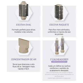 Com 4 funções em 1, o Secador de Cabelos PSC3500 acompanha concentrador de ar, cacheadores, escova oval e escova raquete, permitindo criar diversos penteados com facilidade. O revestimento em cerâmica protege os fios do calor excessivo, e a função escova com cerdas multicerdas oferece durabilidade e praticidade ao alisar ou modelar.