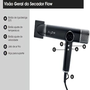 Motor brushless de 120.000 rpm 3 níveis de velocidade 4 níveis de temperatura Display lcd Bico magnético Filtro duplo com tampa magnética Jato de ar frio Fluxo de ar: 86 / h Velocidade do vento: 19 m/s Cabo extra longo 3 metros Alça para suporte Garantia: 6 meses Certificação inmetro