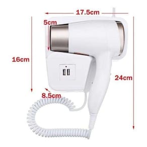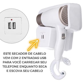 Secador De Cabelo Hotel 1000W Com 2 Usb Suporte Parede 110V