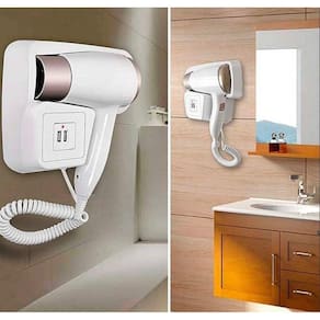 Secador de Cabelo Hotel 1000W com 2 USB Suporte Parede 110V
