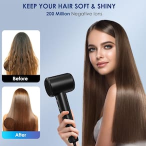 -?Íons negativos e cuidados com o cabelo com controle inteligente de temperatura?Nosso secador de cabelo com íons libera 200 milhões de íons negativos para combater eficazmente a eletricidade estática do cabelo, manter o cabelo hidratado e cuidar profundamente das raízes do cabelo, deixando-o mais macio, suave e adicionando brilho. Além disso, o secador de cabelo é equipado com tecnologia inteligente de temperatura constante para evitar danos ao cabelo devido à temperatura excessiva, garantindo que você desfrute de efeitos de secagem de cabelo de alto nível.