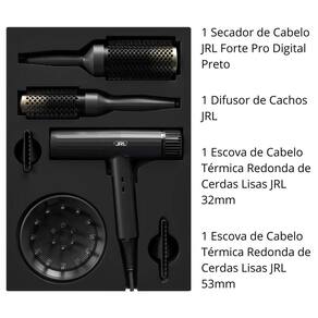 O secador de cabelos jrl forte pro é a escolha ideal para quem busca potência, inovação e praticidade no dia a dia. Desenvolvido com motor digital de até 100.000 rpm, ele entrega fluxo de ar de alta pressão e velocidade, garantindo secagem rápida e resultados profissionais em menos tempo. Sua tecnologia de íons avançados reduz o frizz e a eletricidade estática dos fios, mantendo a hidratação natural do cabelo e proporcionando um acabamento mais alinhado e brilhante. Além disso, conta com função de memória, que grava as últimas configurações de temperatura e velocidade utilizadas, oferecendo muito mais praticidade no uso. Leve e compacto, pesando apenas 320g, o forte pro foi projetado para reduzir o cansaço durante longas sessões de uso, sendo ideal tanto para profissionais quanto para quem deseja praticidade em casa. O secador ainda possui filtro removível e lavável, garantindo maior durabilidade do motor e manutenção facilitada, além da função de limpeza automática, que expulsa partículas e prolonga a vida útil do equipamento. Especificações: - motor digital - tecnologia iônica avançada: reduz frizz, estática e preserva a hidratação - 3 níveis de temperatura - 3 níveis de velocidades - botão de ar frio - leve e compacto: apenas 320g - cabo de 3,5 metros A caixa contém: 01 secador forte pro digital 01 difusor de cachos 02 bicos direcionadores 01 escova de cabelo térmica 32mm 01 escova de cabelo térmica 53mm