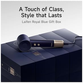 Caixa de presente Azul Real Laifen: celebre o momento e traga alegria para amigos, família ou qualquer pessoa que mereça algo verdadeiramente especial. Inclui o Secador de Cabelo Premium Laifen, Bocal Liso e Suporte Magnético de Parede. Secagem Iônica Potencializada pelo motor de alta velocidade de 110.000 RPM da Laifen, o Premium produz velocidades de ar de 22ms que secam o cabelo rapidamente. Protege Contra Danos por Calor: o Premium monitora cuidadosamente o calor 100 vezes com a tecnologia de Controle Inteligente de Temperatura, mantendo o cabelo seguro e saudável. LED 3 Cores: o LED especial da Laifen mostra facilmente a temperatura de relance para que você possa sempre aplicar a quantidade certa de calor para uma rotina de cuidados com o cabelo sem problemas. 200 Milhões de Íons Negativos: emite 200 milhões de íons negativos durante a secagem, combatendo o frizz e fios arrepiados desde a fonte. Os íons também quebram as moléculas de água mais rapidamente, reduzindo o tempo de secagem e a exposição ao calor.