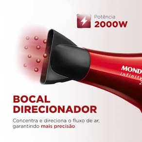 Seu cabelo lindo e saudável em pouquíssimo tempo! Conheça o Infinity Íon 2500 SC-12 da Mondial, que tem 2.000W de potência e proporciona mais agilidade na secagem dos fios. Além de economizar tempo, você ainda garante um aspecto saudável às mechas, com maciez e sem frizz, graças à tecnologia Tourmaline Íon.