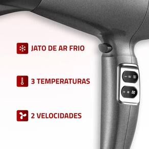 3 TEMPERATURAS + 2 VELOCIDADES Melhor desempenho para secar, alisar e modelar. Alterne entre as variações de velocidade e temperatura para uma secagem mais adequada aos diferentes tipos de cabelo.